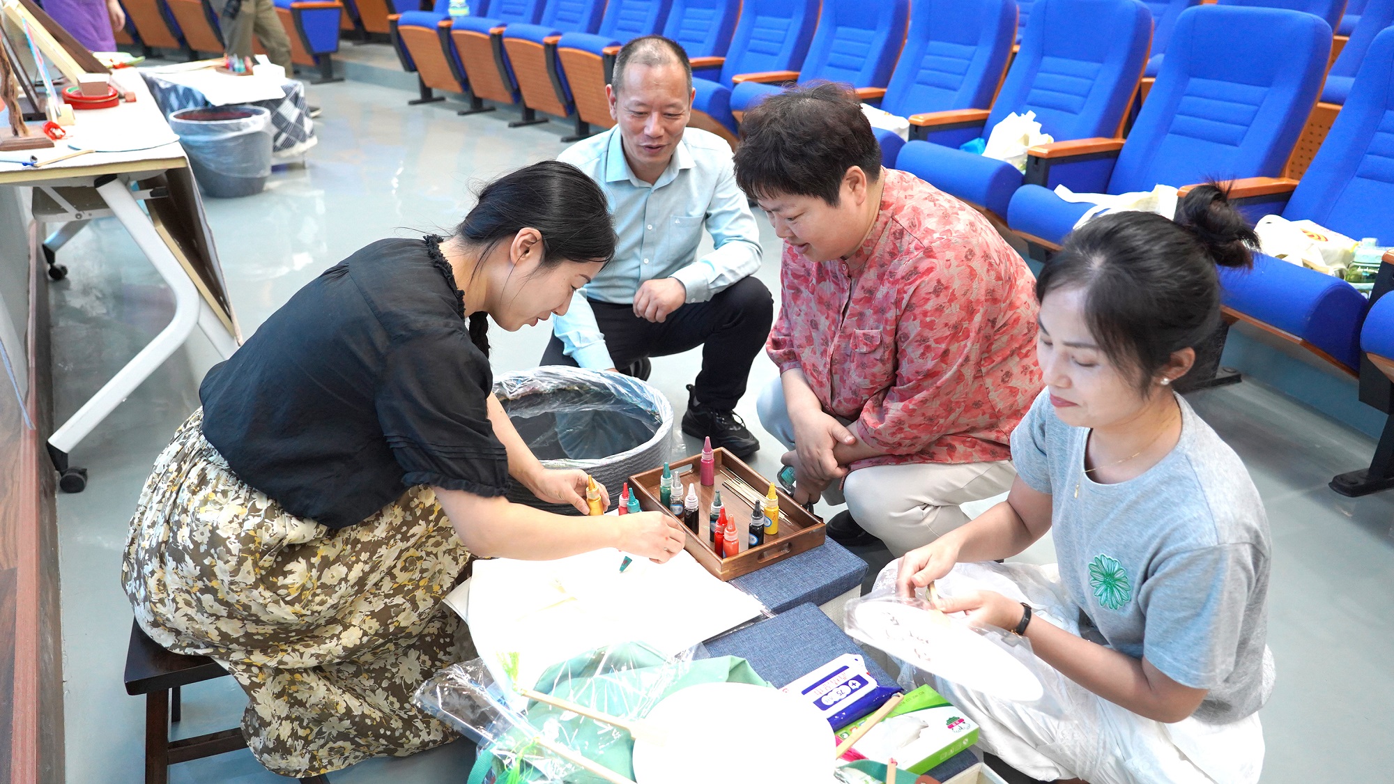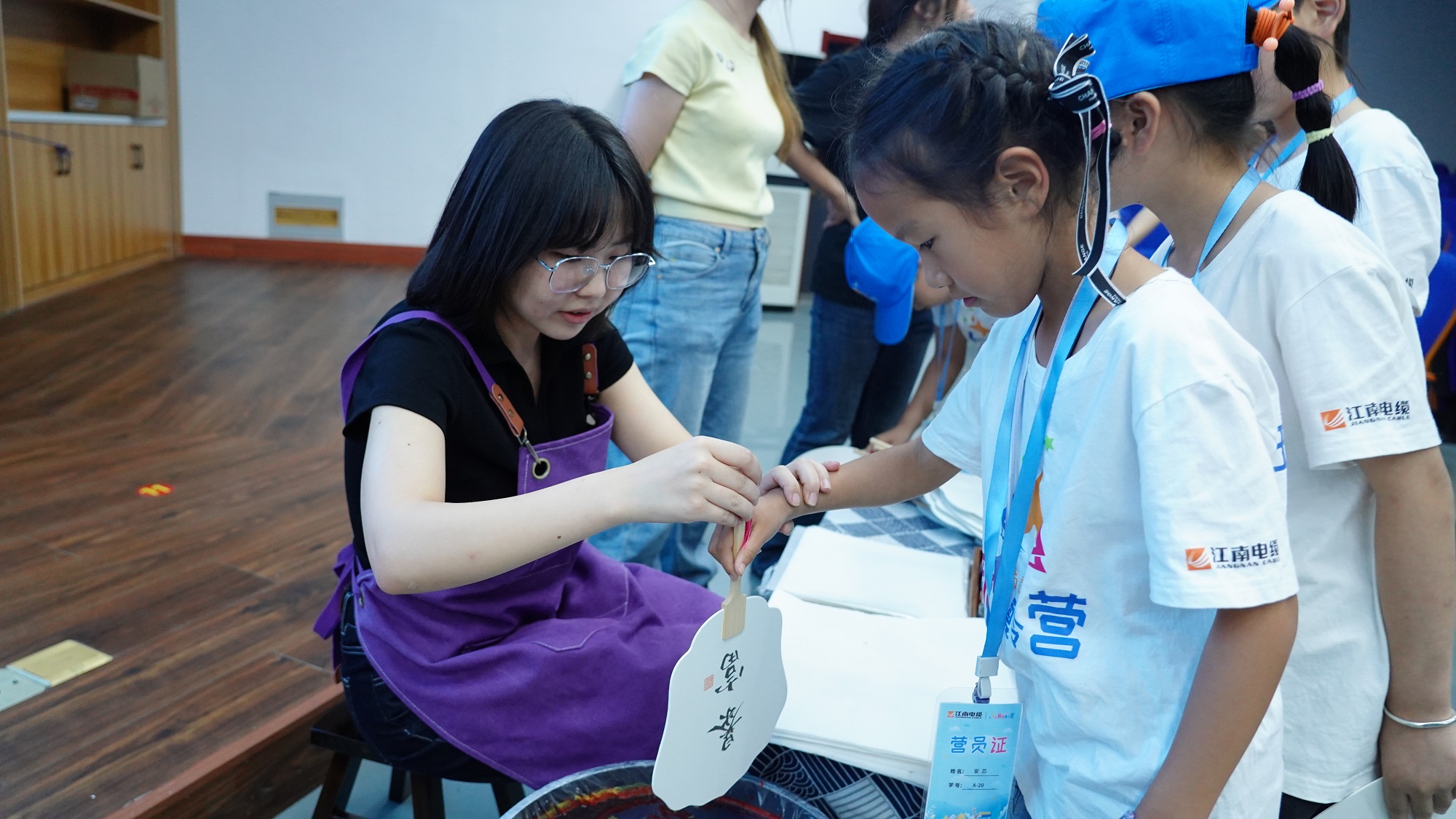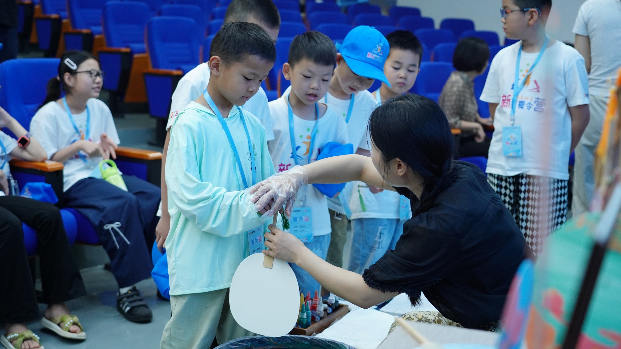 在老師的指導(dǎo)下,孩子們認(rèn)真學(xué)習(xí)漆扇制作技巧,從顏色選擇到滴入漆料再到素扇入水附著花紋,一把把絢麗、雅致的漆扇躍然而出。大家在實(shí)踐中感受非遺技藝的精妙,更在潛移默化中培養(yǎng)了對(duì)傳統(tǒng)文化的熱愛。