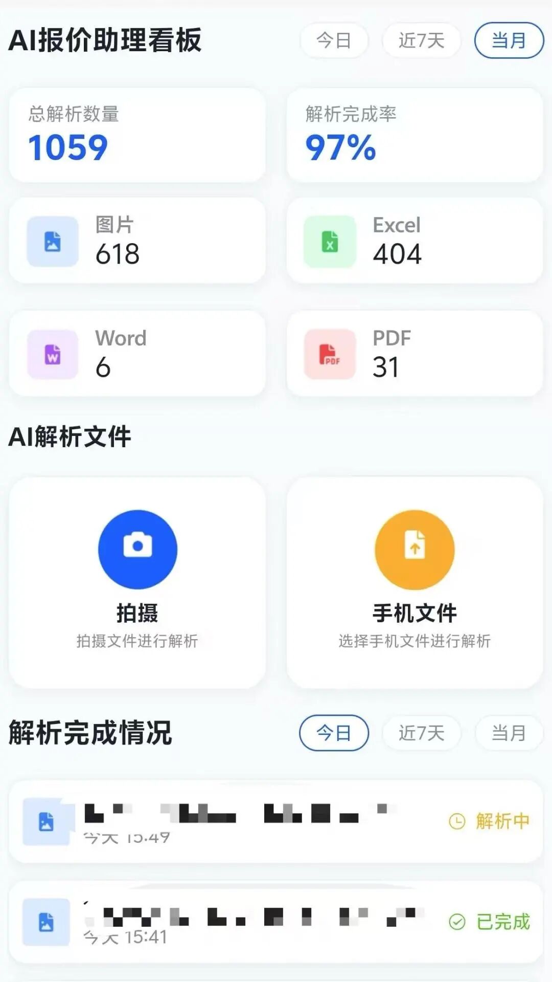 融合視覺(jué)識(shí)別、手寫識(shí)別與抗干擾處理技術(shù),輕松應(yīng)對(duì)圖片、PDF、Excel 等各類詢價(jià)單據(jù),自動(dòng)排除無(wú)效信息,精準(zhǔn)提取核心數(shù)據(jù),識(shí)別準(zhǔn)確率高達(dá)98%。